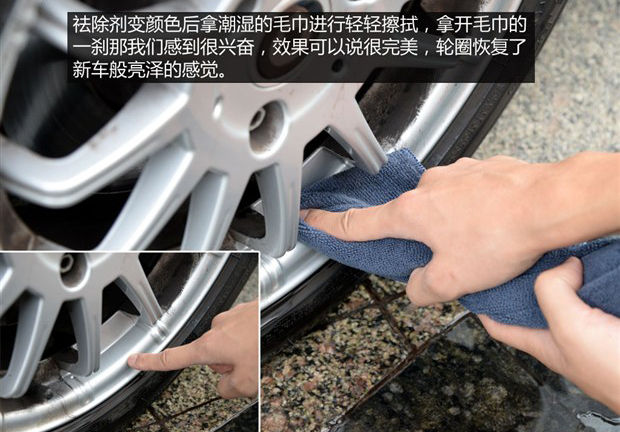對于祛除輪圈上的黑色和黃色污漬都有明顯的效果
