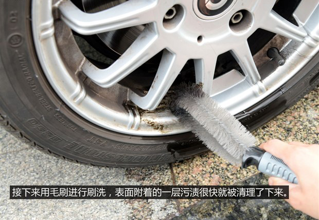 只需噴灑至輪圈,靜置10秒鐘后擦出洗劑即可,嚴(yán)重污漬也需毛刷進(jìn)行清洗