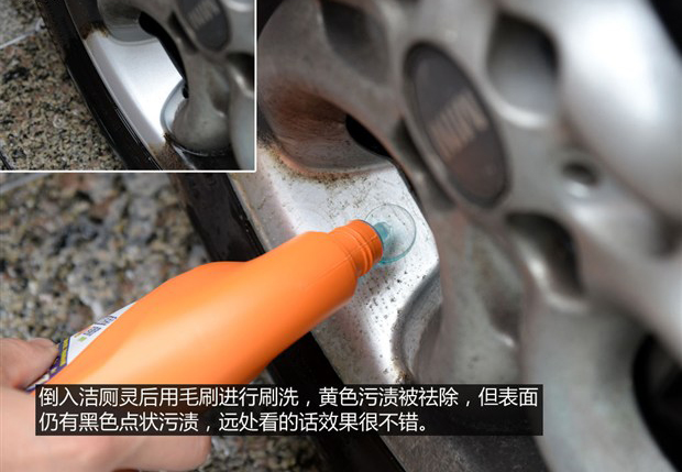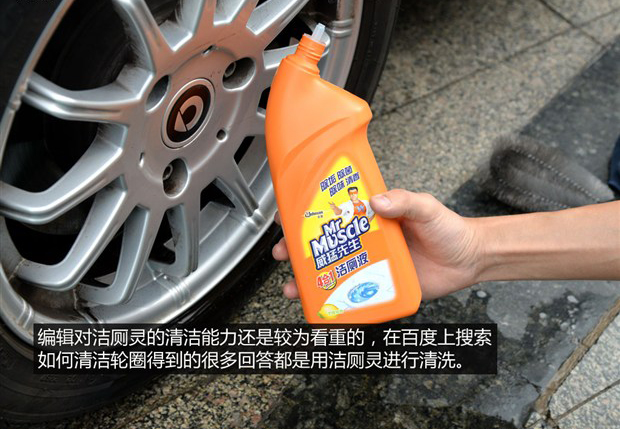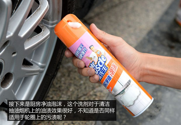 接下來就該輪到廚房凈油泡沫和潔廁靈了,這兩個清洗劑可以清洗輪圈上的污漬在民間“流傳已久”,下面我們就來檢驗(yàn)一下它們的清潔能力。