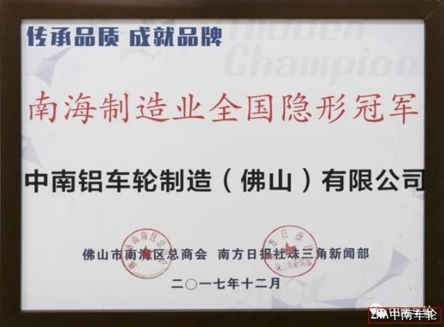 中南車輪“南海制造業(yè)全國(guó)隱形冠軍”牌匾