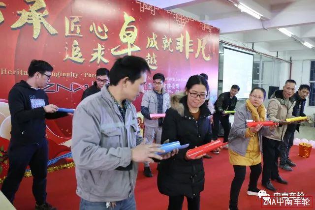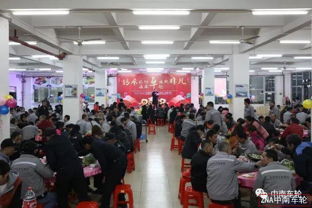 夜幕降臨,華燈初上。佛山市南海區(qū)獅山工業(yè)園區(qū)內(nèi)中南鋁車輪制造(佛山)有限公司【下稱“中南車輪(佛山)公司”】員工餐廳內(nèi),歡快的旋律已響起,2018年2月5日,中南車輪(佛山)公司2018年迎春晚宴的序幕正在夜幕下緩緩拉開。集團(tuán)總裁、中南車輪董事長梁權(quán)輝先生攜集團(tuán)一眾領(lǐng)導(dǎo)、中南車輪高層出席了當(dāng)天晚宴。